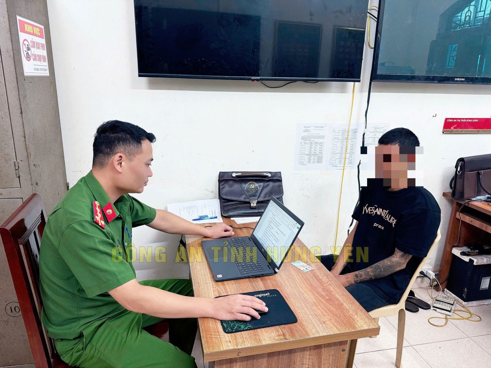 Công an xã Đông Hưng làm việc với đối tượng Bùi Văn Thắng