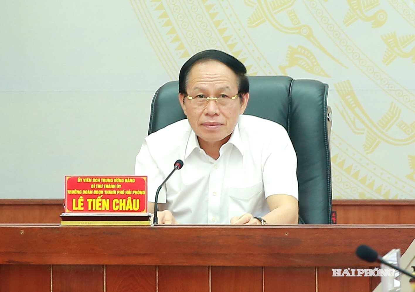 Đồng chí Lê Tiến Châu, Ủy viên Trung ương Đảng, Bí thư Thành ủy, Trưởng Đoàn đại biểu Quốc hội thành phố Hải Phòng chủ trì cuộc làm việc.