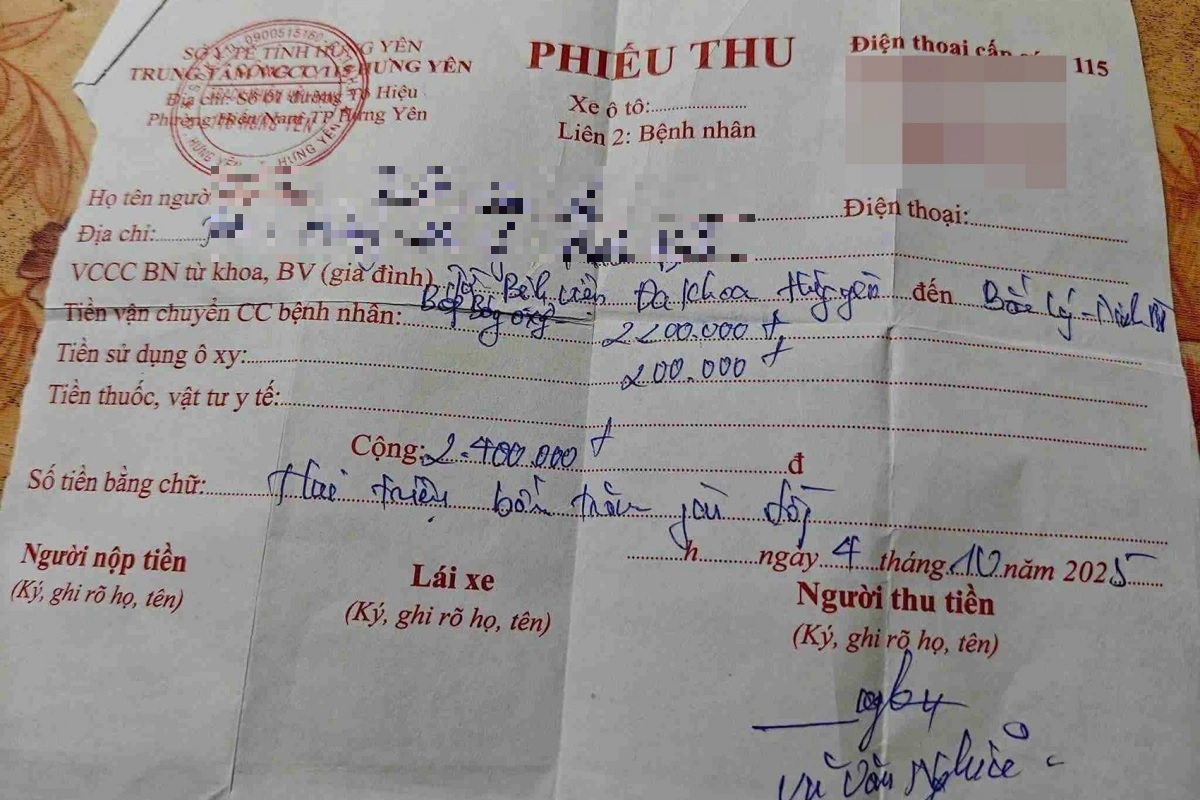 Sau khi về tới nhà, lái xe thông báo anh phải trả 2,4 triệu đồng cho phí chuyến đi. Mặc dù thấy giá hơi cao, nhưng trong lúc nhà đang có việc nên anh Ứng cũng trả tiền và yêu cầu ghi lại phiếu thu.