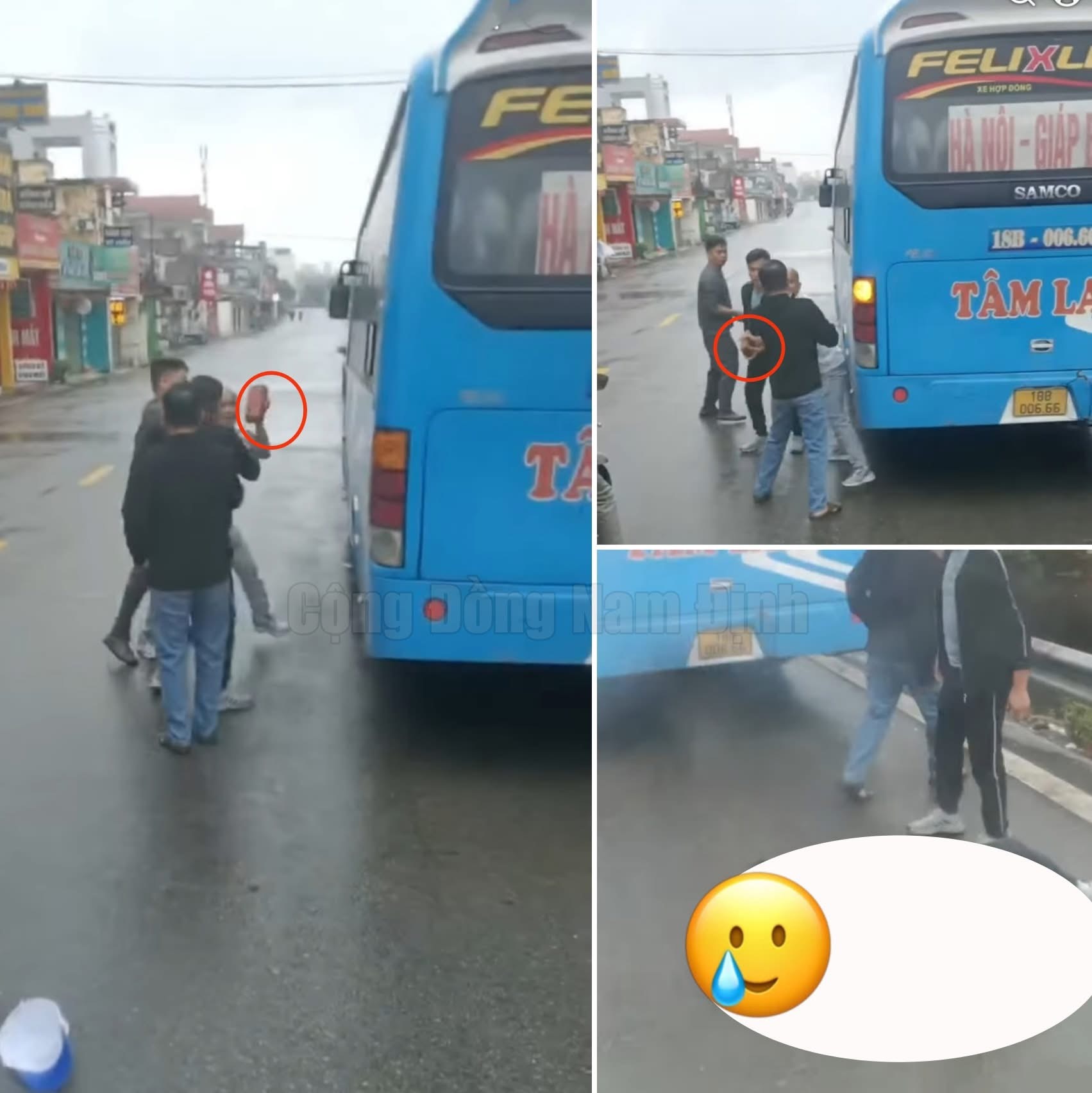 Đại diện nhà xe Đoàn Liên cho biết, tài xế Vũ Văn Đoan (43 tuổi, trú xã Hải Hưng, tỉnh Ninh Bình) gặp sự cố kỹ thuật, chỉ chậm 1–2 phút, không ảnh hưởng đến hoạt động của các xe khác. Tuy nhiên, một nhân viên của nhà xe Tâm Lan không đồng ý và đã lao tới hành hung anh Đoan, gây thương tích ở đầu và mặt. Người dân đưa anh Đoan đi cấp cứu, trong khi người tấn công rời khỏi hiện trường.