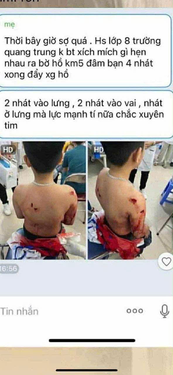 Mâu thuẫn cá nhân, học sinh cấp 2 trường THCS Quang Trung ở tp. Yên Bái. Dùng vật sắc nhọn đâmmmm bạn xong còn lôi bạn né..m xuống hồ