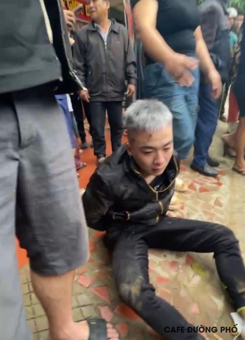 Thanh niên cướp tiệm vàng rồi bỏ chạy đã bị người dân ở xã Trại Cau (tỉnh Thái Nguyên) vây bắt, giao cho lực lượng chức năng.