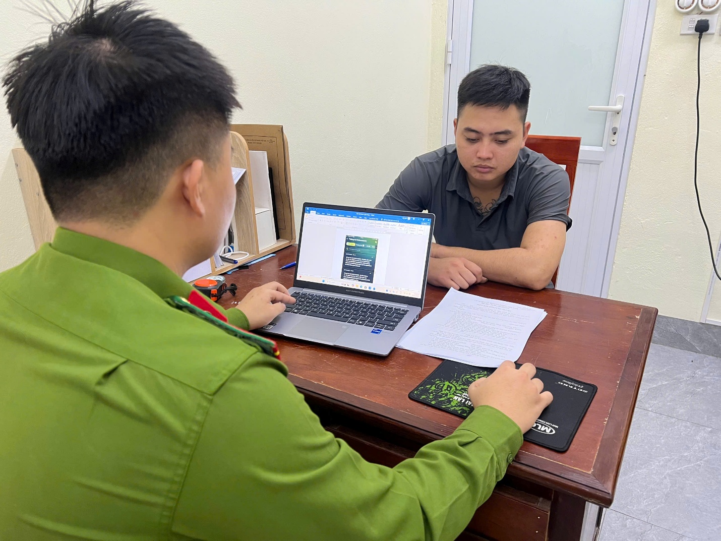 Công an xã Lương Bằng làm việc với đối tượng Nguyễn Anh Tới