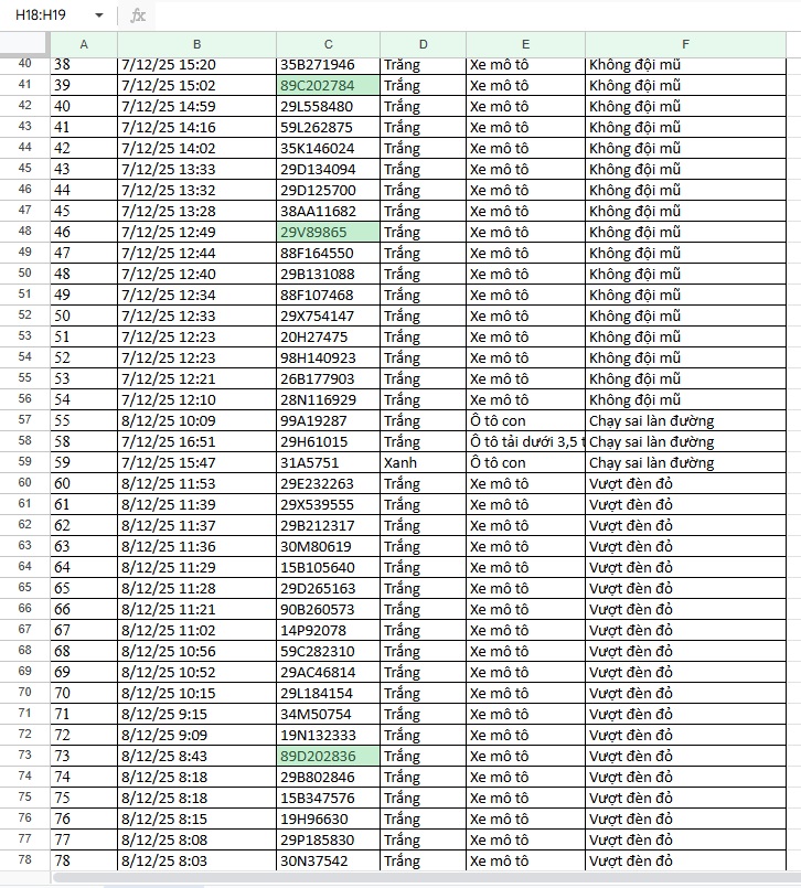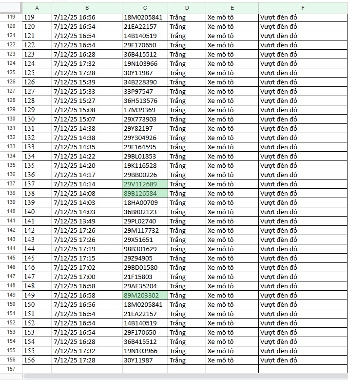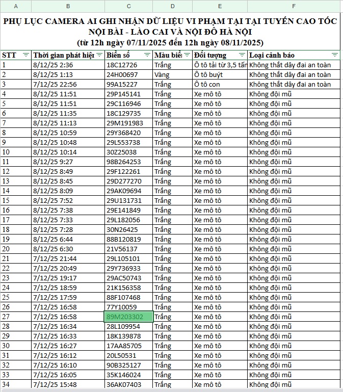 “PHỤ LỤC CAMERA AI GHI NHẬN DỮ LIỆU VI PHẠM TẠI TẠI TUYẾN CAO TỐC NỘI BÀI – LÀO CAI VÀ NỘI ĐÔ HÀ NỘI (từ 12h ngày 07/11/2025 đến 12h ngày 08/11/2025)”