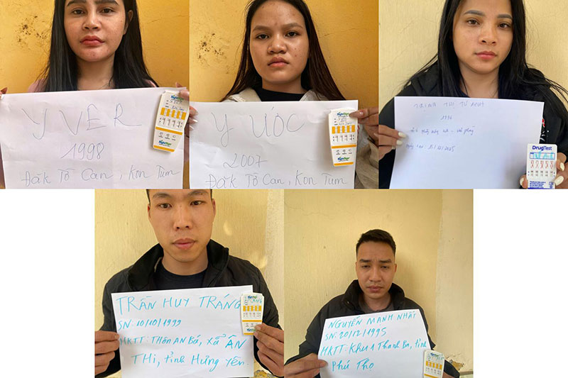 Tiến hành test nhanh trong mẫu nước tiểu, cả 5 đối tượng đều dương tính với ma túy. Ngay sau đó, Công an xã Yên Mỹ đã bàn giao hồ sơ cùng tang vật, tài liệu liên quan cho Cơ quan Cảnh sát điều tra, Công an tỉnh Hưng Yên để xử lý theo thẩm quyền. Cùng ngày, Cơ quan Cảnh sát điều tra đã ra lệnh khám xét khẩn cấp chỗ ở của N.T.T. tại thôn Tử Dương, xã Yên Mỹ, tỉnh Hưng Yên. Quá trình khám xét thu giữ nhiều tang vật liên quan.