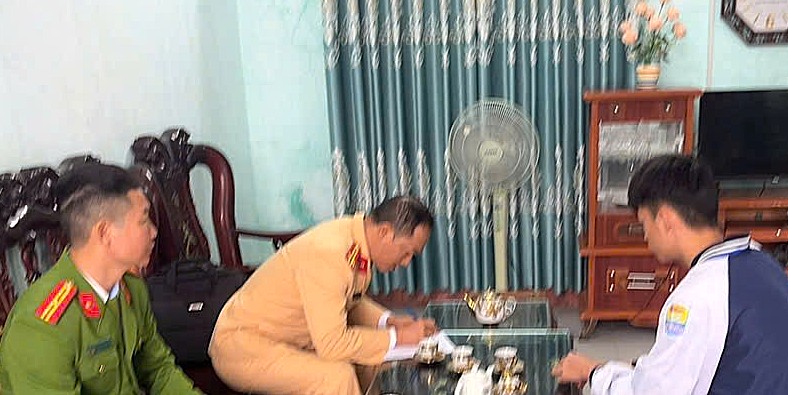 Sau khi tiếp nhận chỉ đạo của lãnh đạo Phòng Cảnh sát giao thông, Đội Cảnh sát giao thông đường bộ số 4 đã tiến hành kiểm tra, xác minh, lập biên bản xử lý vi phạm hành chính đối với nam học sinh điều khiển xe máy điện là N.Đ.M, sinh năm 2010, trú tại phường Hồng Quang, tỉnh Ninh Bình về các lỗi: Người từ đủ 14 đến dưới 16 tuổi điều khiển xe gắn máy ( Quy định tại Khoản 1 , điều 18, mục 3 NĐ168-NĐ/CP); Không đội mũ bảo hiểm cho người đi xe máy (Điểm h , khoản 2, điều 7 NĐ 168/2024-NĐ/CP); Chở người ngồi trên xe không đội mũ bảo hiểm ( Điểm i , khoản 2 , điều 7 NĐ168/2024-NĐ/CP); Chở theo 2 người trên xe ( Điểm g , khoản 2 , điều 7 NĐ168/2024-NĐ/CP).