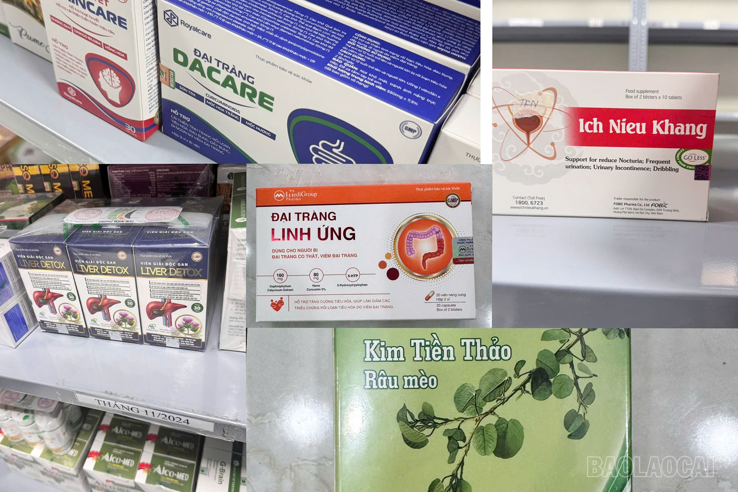 Các sản phẩm giả chủ yếu là sản phẩm bổ sung collagen, vitamin, thuốc bổ xương khớp, tiêu hóa… (Ảnh: Công an Lào Cai).
