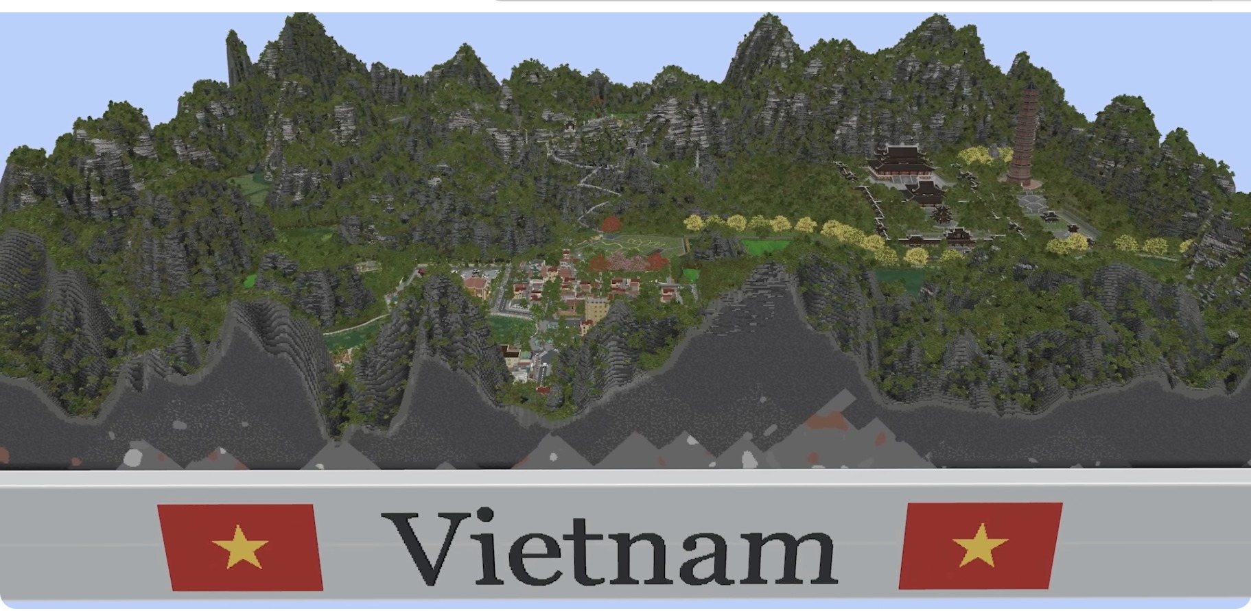 Những địa danh nổi tiếng lần lượt hiện ra gồm Hang Múa, Núi Ngọa Long, Chùa Bái Đính. Đội Việt Nam còn sử dụng các vật phẩm tùy chỉnh như những chiếc đèn lồng độc đáo không có sẵn trong game Minecraft nguyên bản để tạo điểm nhấn văn hóa.