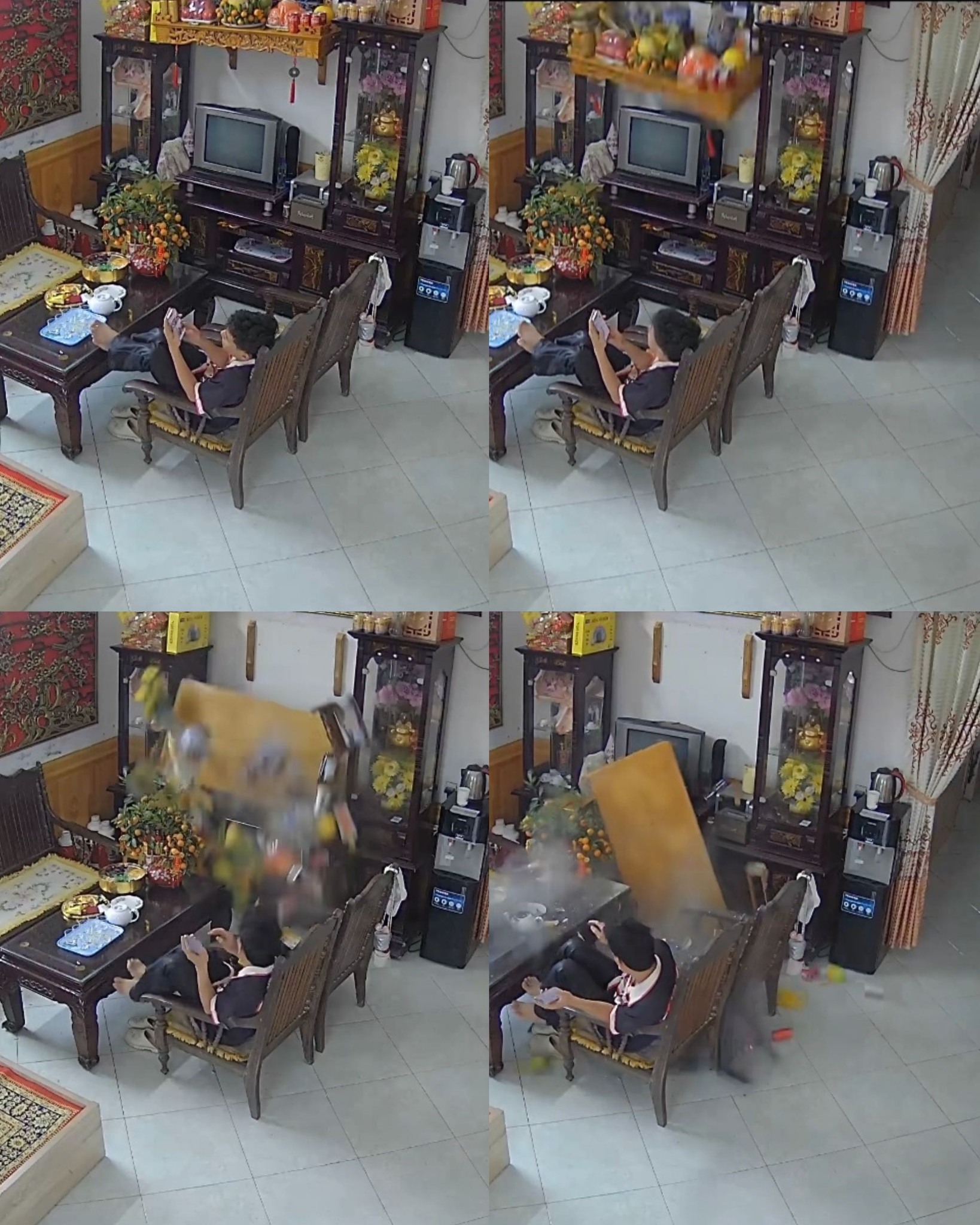 Ngay sau sự việc, gia đình nhanh chóng thu dọn đồ đạc, lau dọn lại phòng khách và tìm vị trí phù hợp để sắp xếp lại khu vực thờ cúng. Theo anh Quyết, trước đó gia đình chỉ chuẩn bị lễ vật đầy đủ để thắp hương đầu năm, không có tác động mạnh nào.