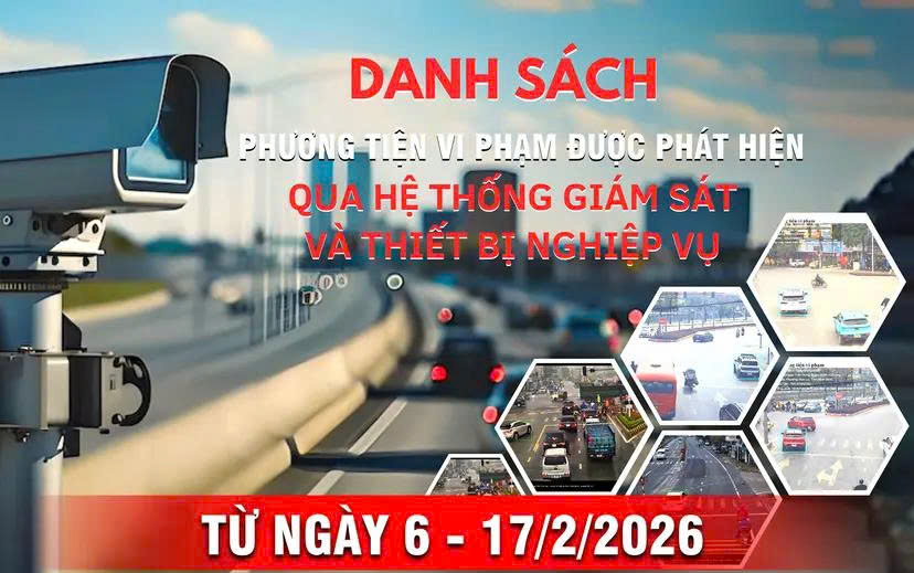 Danh sách phương tiện vi phạm giao thông được phát hiện qua hệ thống giám sát và thiết bị nghiệp vụ từ ngày 6-17/2/2026