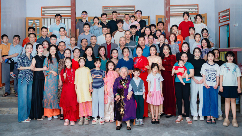 Bà ngồi trên ghế, các con gái, con dâu xếp hàng nhận quà tặng của mẹ, mỗi người 1 chỉ vàng. Lúc đầu, mọi người vui vẻ, cười tươi nhưng sau đó ai cũng ngấn nước mắt vì xúc động”, Huyền chia sẻ.