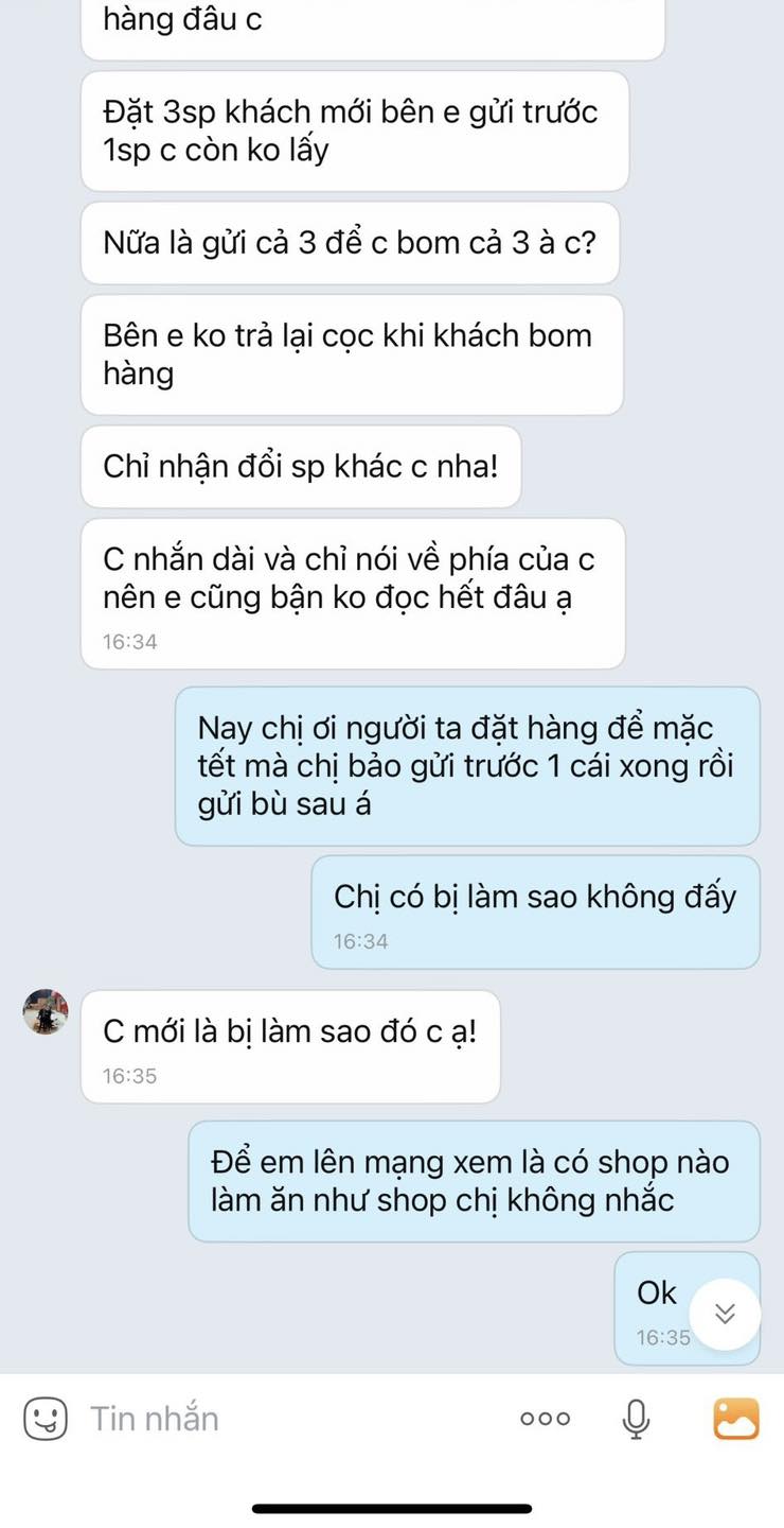 Một bạn nữ có một tình huống mua hàng online shop ở Phố Nối, đặt cọc mua 3 món đồ nhưng shop chỉ ship 1 món khác mẫu rồi nói sợ “bùng” nên test khách, không bùng mới gửi tiếp…. Giờ đăng lên để xin ý kiến khách quan từ mọi người nội dung như sau: