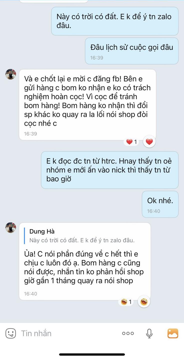 4. Em đã hoàn hàng và tự thanh toán phí ship, có nhắn lại cho shop nhưng không nhận được phản hồi.