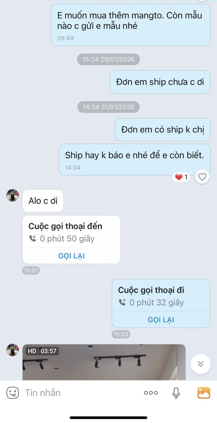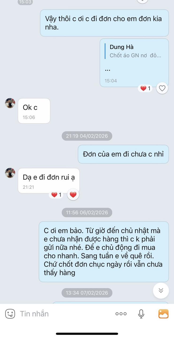 2. Sau khi đặt, em phải nhiều lần hỏi thì shop mới phản hồi và khẳng định có gửi hàng. Đến ngày 12/2 em mới nhận được hàng.