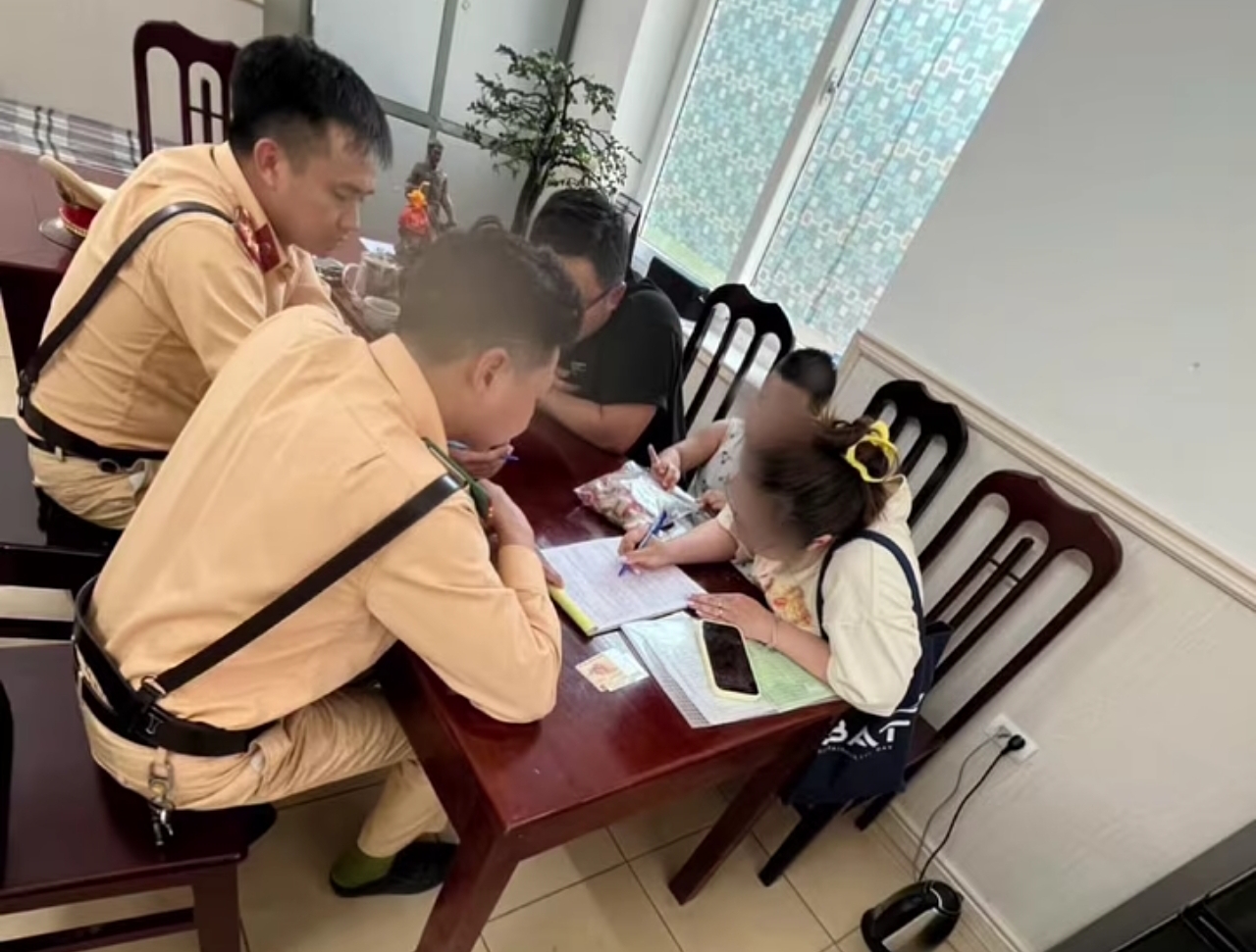Cảnh sát giao thông làm việc với nữ tài xế.